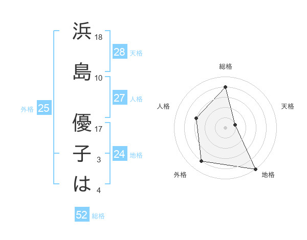 浜島 優子はさんを姓名の画数から五運を鑑定