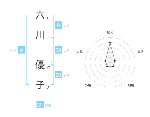 六川 優子さんの総格は29画の4点!