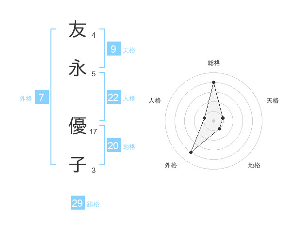 友永 優子さんの総格は29画の4点!