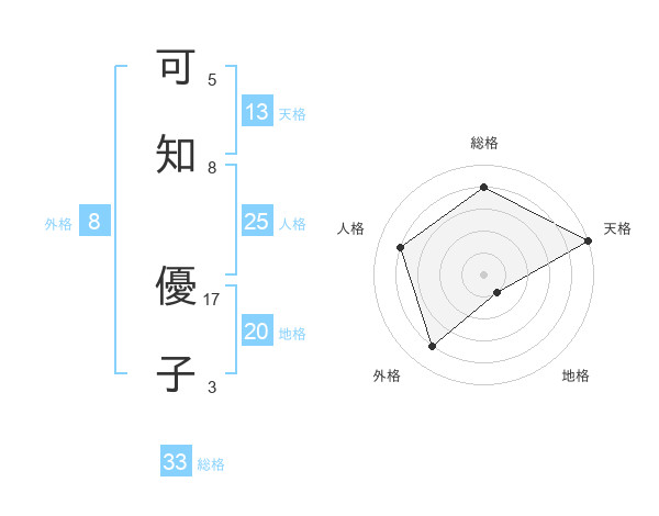 可知 優子さんの総格は33画の4点!