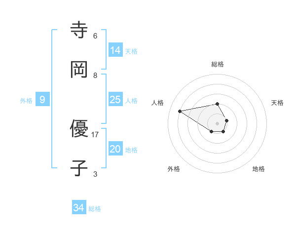 寺岡 優子さんの総格は34画の2点!