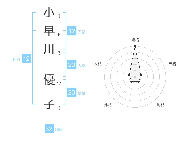 小早川 優子さんの総格は32画の5点!