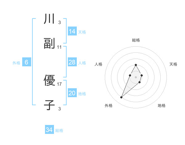 川副 優子さんの総格は34画の2点!