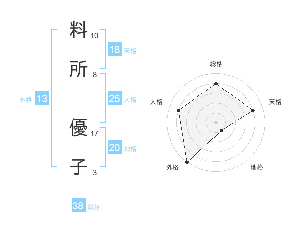 料所 優子さんの総格は38画の4点!
