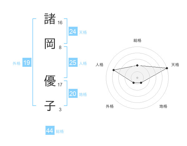 諸岡 優子さんの天格は24画の5点!