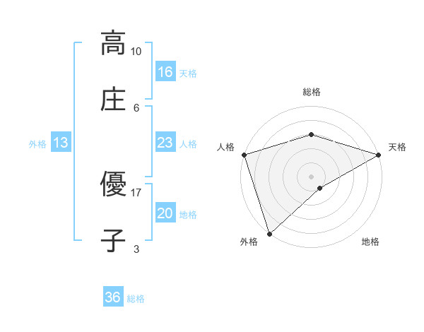 高庄 優子さんの天格は16画の5点!