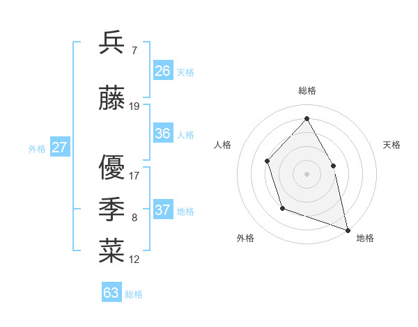 兵藤 優季菜さんを姓名の画数から五運を鑑定