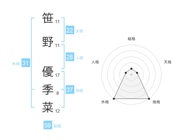 笹野 優季菜さんを姓名の画数から五運を鑑定