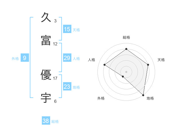 久富 優宇さんの総格は38画の4点!