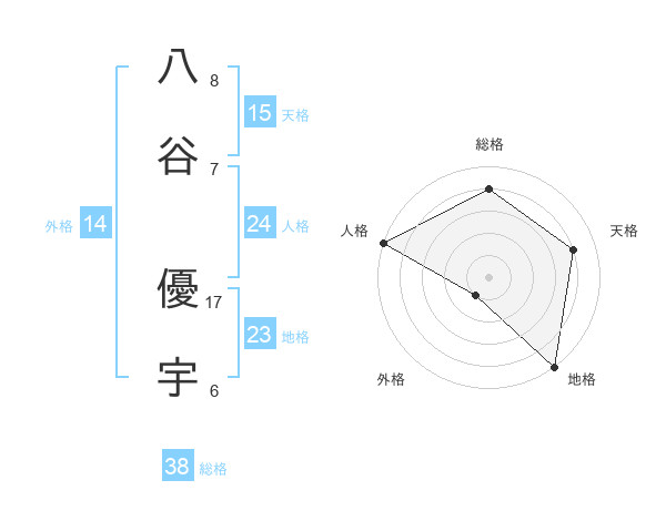 八谷 優宇さんの天格は15画の4点!
