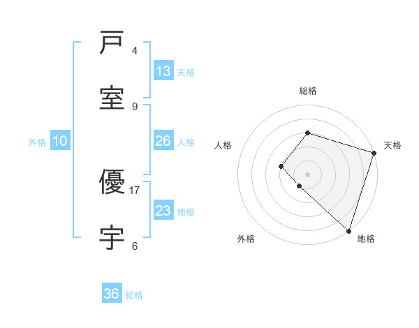 戸室 優宇さんの天格は13画の5点!