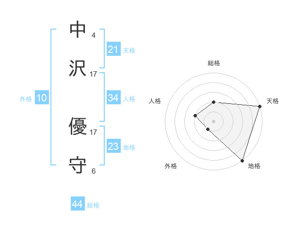 中沢 優守さんの人格は34画の2点!