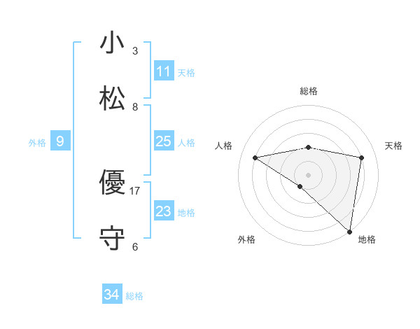 小松 優守さんの地格は23画の5点!