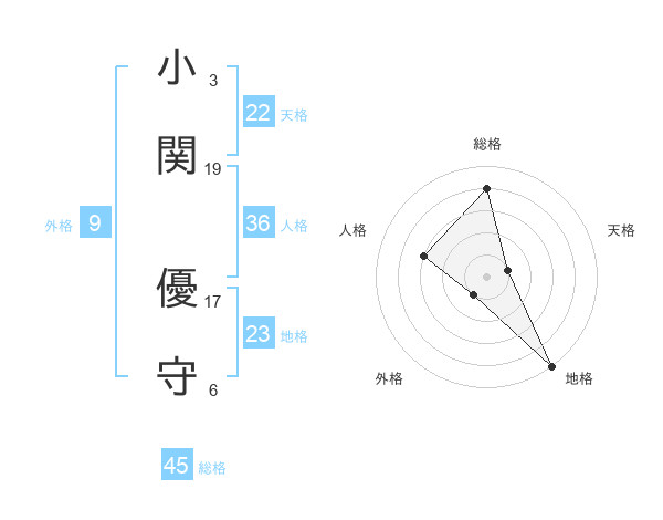 小関 優守さんの総格は45画の4点