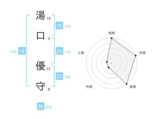 湯口 優守さんの総格は39画の5点!