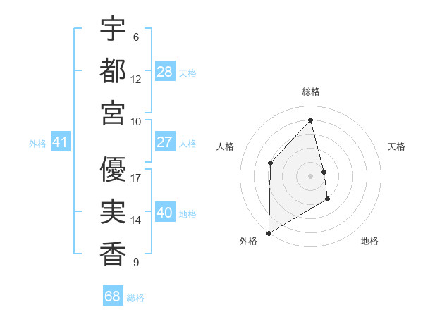 宇都宮 優実香さんを姓名の画数から五運を鑑定