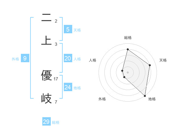 二上 優岐さんの総格は29画の4点!