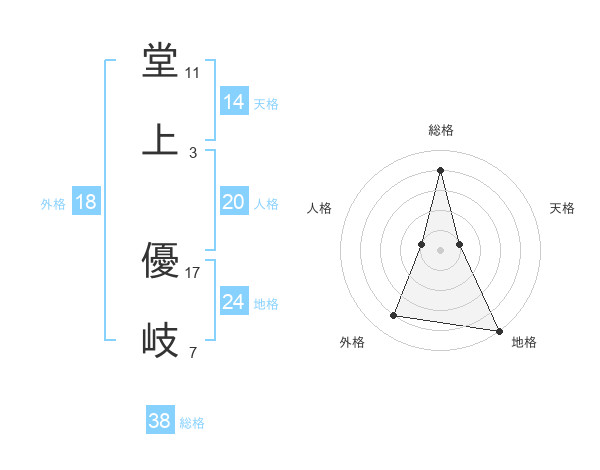 堂上 優岐さんを姓名の画数から五運を鑑定