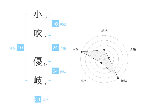 小吹 優岐さんの総格は34画の2点!