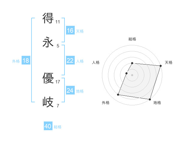 得永 優岐さんの総格は40画の2点!