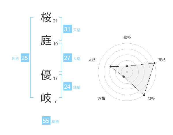 桜庭 優岐さんを姓名の画数から五運を鑑定