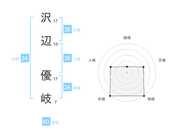 沢辺 優岐さんを姓名の画数から五運を鑑定