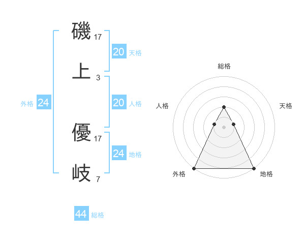 磯上 優岐さんの外格は24画の5点!