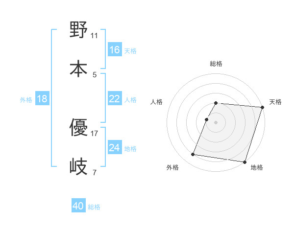 野本 優岐さんの総格は40画の2点!