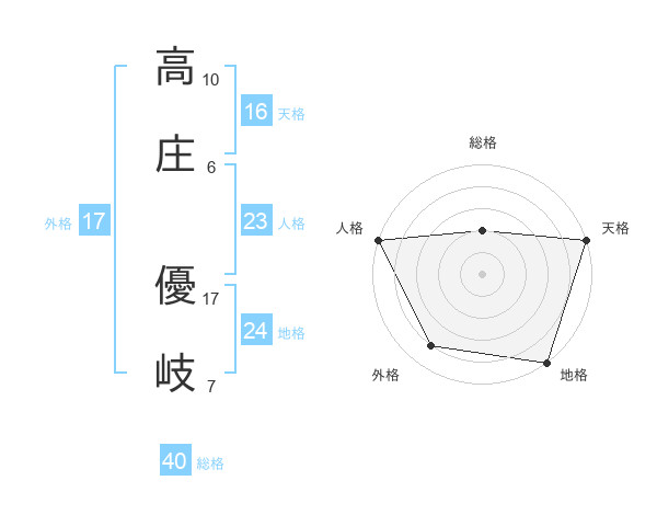 高庄 優岐さんを姓名の画数から五運を鑑定