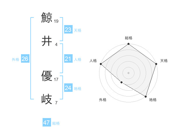 鯨井 優岐さんの総格は47画の5点!