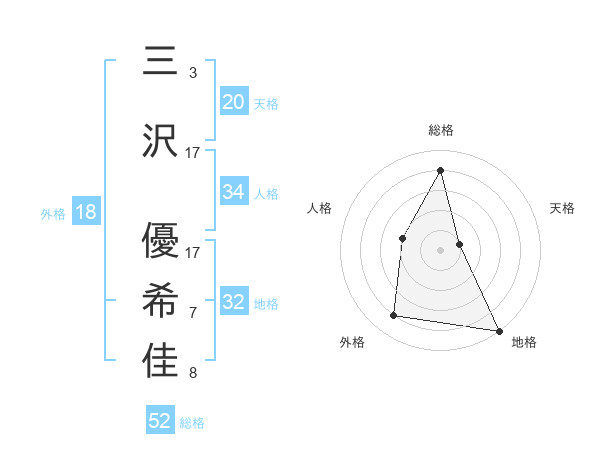三沢 優希佳さんを姓名の画数から五運を鑑定