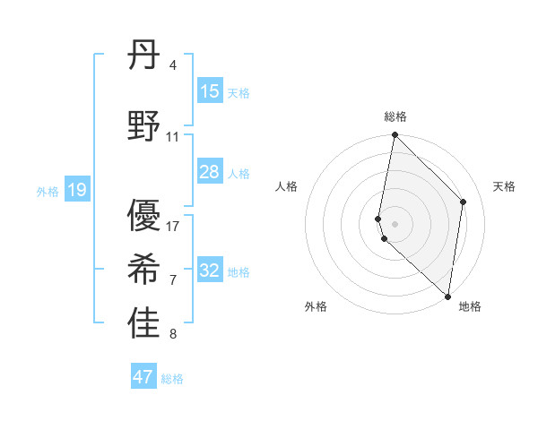 丹野 優希佳さんを姓名の画数から五運を鑑定