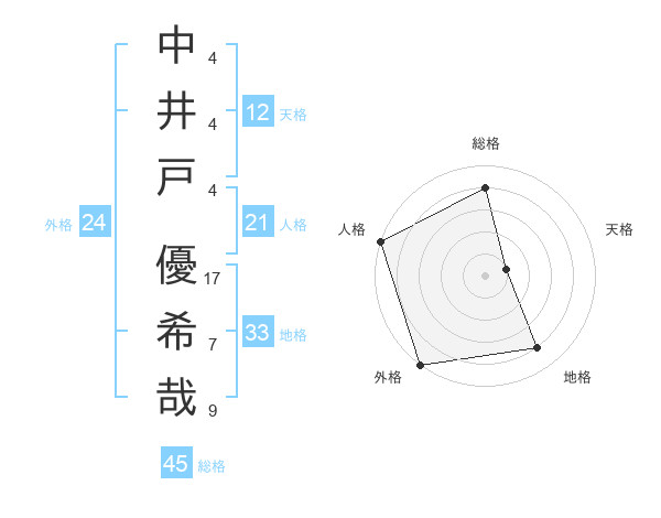 中井戸 優希哉さんの地格は33画の4点!