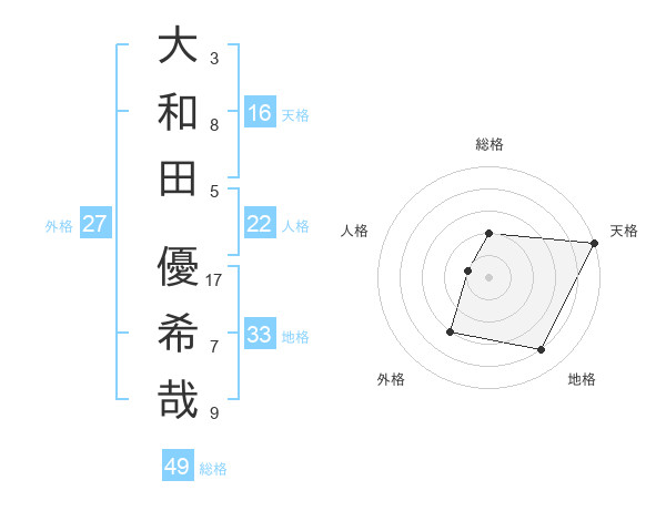 大和田 優希哉さんを姓名の画数から五運を鑑定