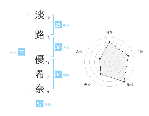 淡路 優希奈さんを姓名の画数から五運を鑑定
