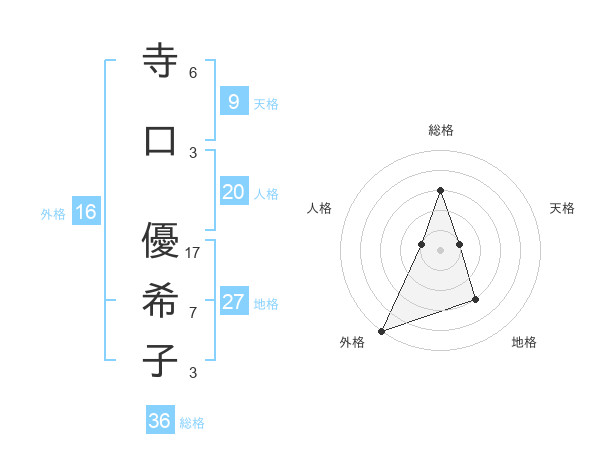 寺口 優希子さんの天格は9画の1点!