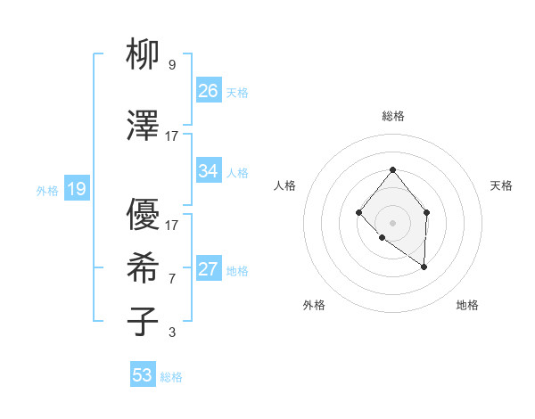 柳澤 優希子さんを姓名の画数から五運を鑑定