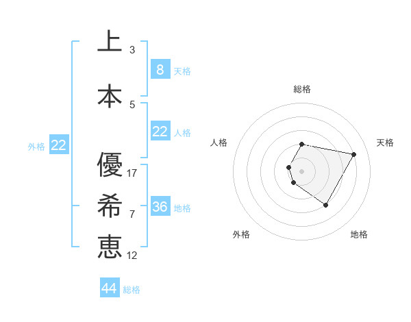 上本 優希恵さんを姓名の画数から五運を鑑定