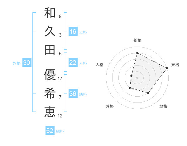 和久田 優希恵さんを姓名の画数から五運を鑑定