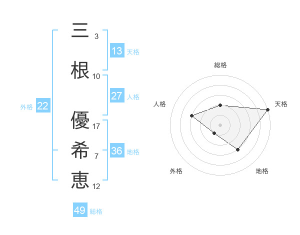 三根 優希恵さんを姓名の画数から五運を鑑定
