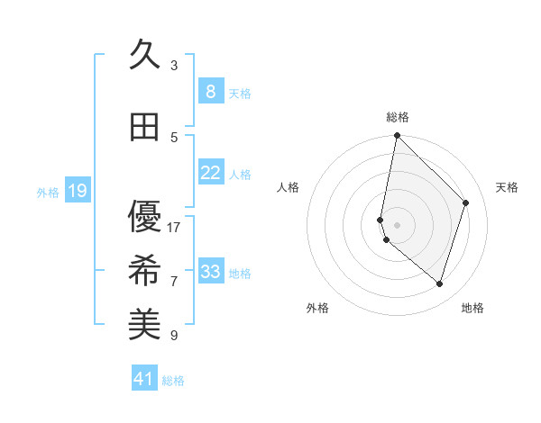 久田 優希美さんの総格は41画の5点!