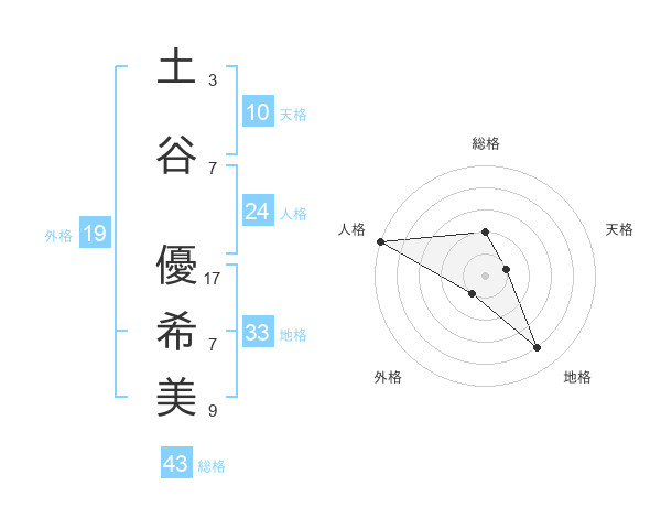 土谷 優希美さんを姓名の画数から五運を鑑定