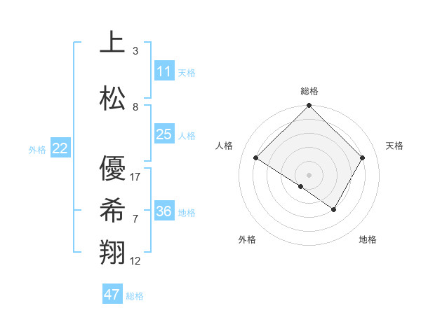 上松 優希翔さんの総格は47画の5点!