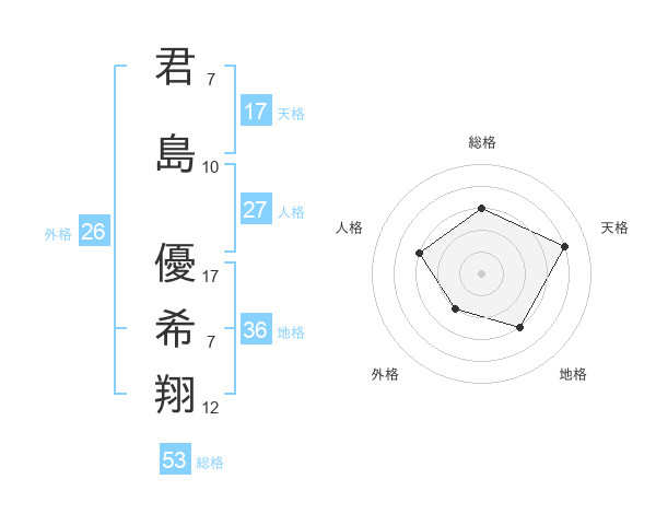 君島 優希翔さんを姓名の画数から五運を鑑定