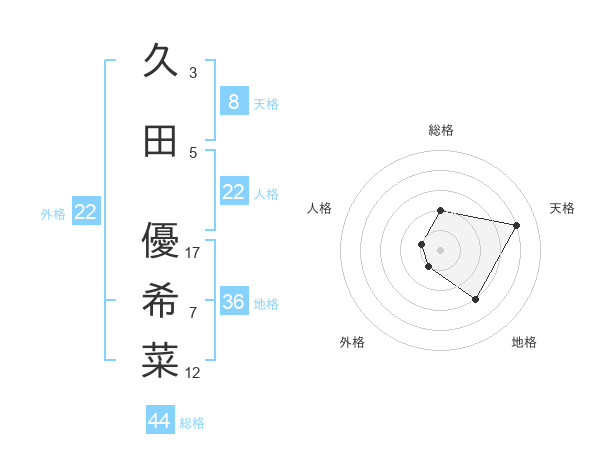 久田 優希菜さんを姓名の画数から五運を鑑定