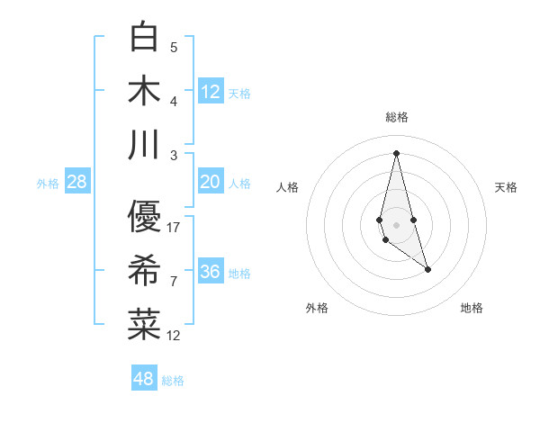 白木川 優希菜さんを姓名の画数から五運を鑑定