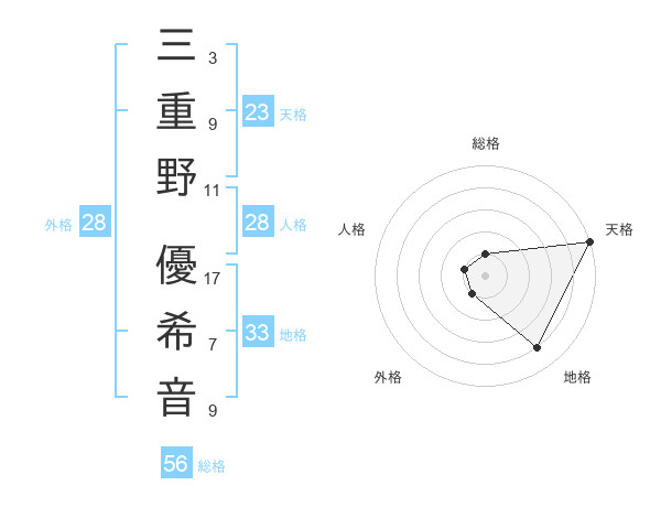 三重野 優希音さんを姓名の画数から五運を鑑定
