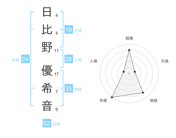 日比野 優希音さんを姓名の画数から五運を鑑定