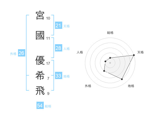 宮國 優希飛さんの天格は21画の5点!
