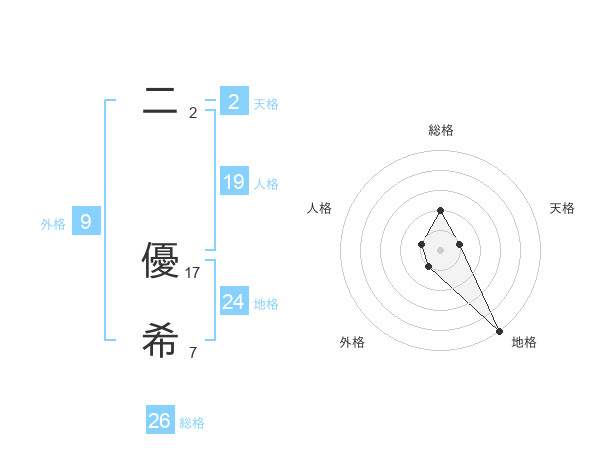 二 優希さんの総格は26画の2点!